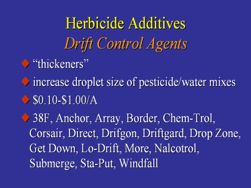 <LI><H2> 38F, Anchor, Array, Border, Chem-Trol, Corsair, Direct, Drifgon, Driftgard, Drop Zone, Get Down, Lo-Drift, More, Nalcotrol, Submerge, Sta-Put, Windfall</H2>