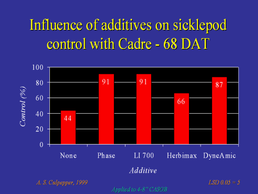 <H1>Influence of additives on sicklepod control with Cadre - 68 DAT  </H1>