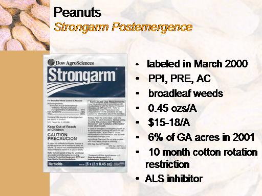PeanutsStrongarm Postemergence<BR> labeled in March 2000
