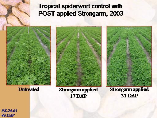 <BR>46 DAP<BR>Tropical spiderwort control withPOST applied Strongarm, 2003<BR>