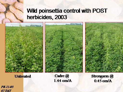 <BR>67 DAT<BR>Wild poinsettia control with POST herbicides, 2003<BR>Untreated<BR>Cadre @