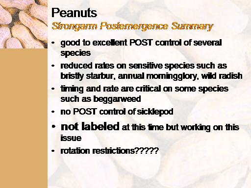 PeanutsStrongarm Postemergence Summary<BR>good to excellent POST control of several species