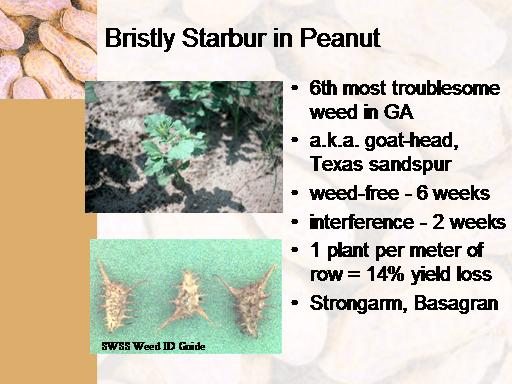 Bristly Starbur in Peanut<BR>6th most troublesome weed in GA