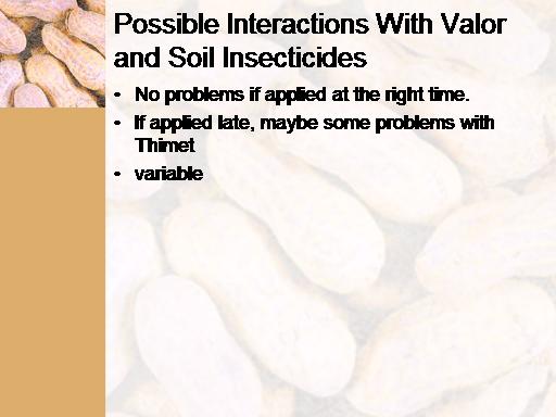Possible Interactions With Valor and Soil Insecticides<BR>No problems if applied at the right time.