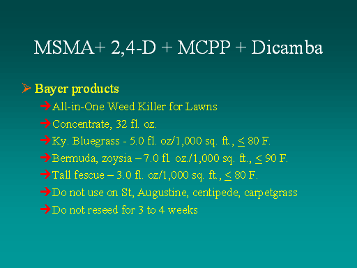 <LI>Ky. Bluegrass - 5.0 fl. oz/1,000 sq. ft., < 80 F.