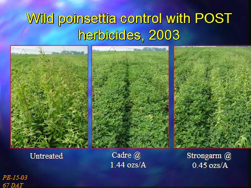 <BR>67 DAT<BR>Wild poinsettia control with POST herbicides, 2003<BR>Untreated<BR>Cadre @