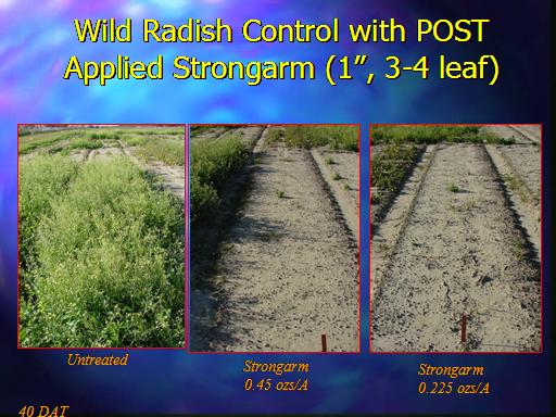 Wild Radish Control with POST Applied Strongarm (1”, 3-4 leaf)<BR>Untreated<BR>Strongarm