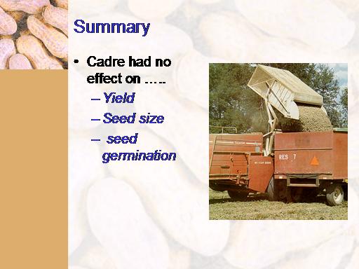 Summary<BR>Cadre had no effect on ….. <BR>Yield <BR>Seed size <BR> seed germination<BR>