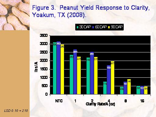 Figure 3.  Peanut Yield Response to Clarity, Yoakum, TX (2008).<BR>LSD 0.10 = 210<BR>