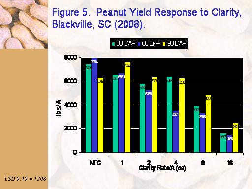 Figure 5.  Peanut Yield Response to Clarity, Blackville, SC (2008).<BR>LSD 0.10 = 1208<BR>