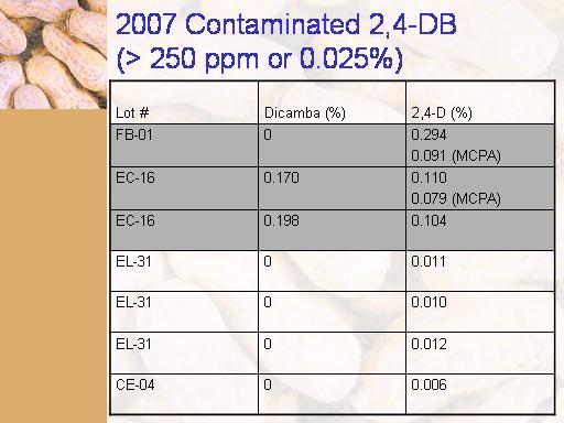 2007 Contaminated 2,4-DB  (> 250 ppm or 0.025%)<BR>