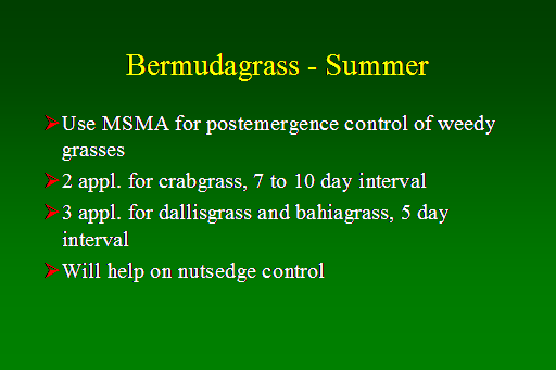 Bermudagrass - Summer<BR>Use MSMA for postemergence control of weedy grasses