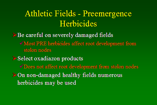 Athletic Fields - Preemergence Herbicides<BR>Be careful on severely damaged fields