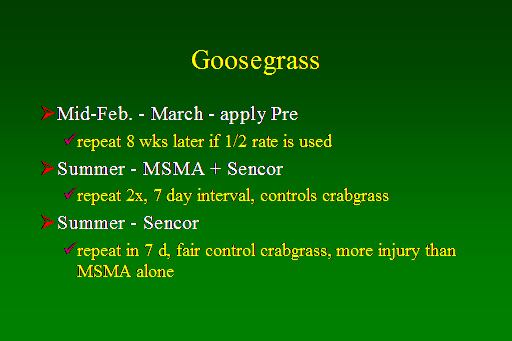 Goosegrass<BR>Mid-Feb. - March - apply Pre
