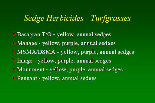 Sedge Herbicides - Turfgrasses<BR>Basagran T/O - yellow, annual sedges