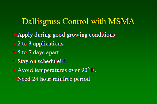Dallisgrass Control with MSMA<BR>Apply during good growing conditions