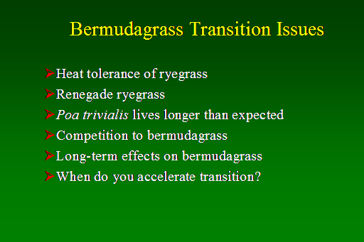 Bermudagrass Transition Issues<BR>Heat tolerance of ryegrass