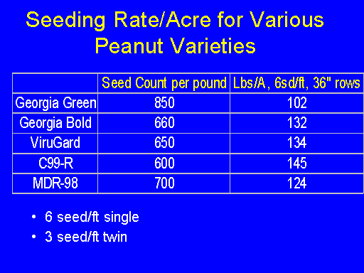 Seeding Rate/Acre for Various Peanut Varieties<BR>6 seed/ft single