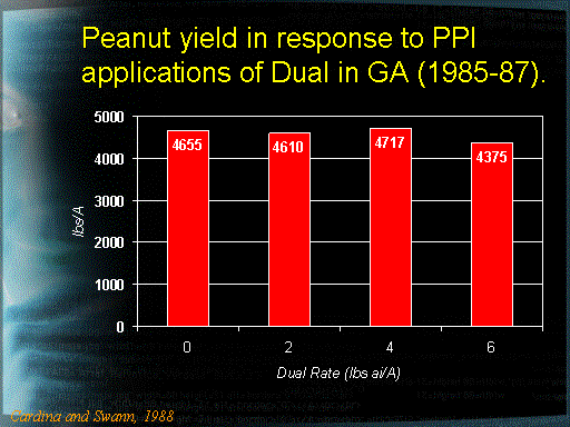 Peanut yield in response to PPI applications of Dual in GA (1985-87).<BR>Cardina and Swann, 1988<BR>