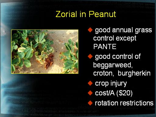 Zorial in Peanut<BR> good annual grass control except PANTE