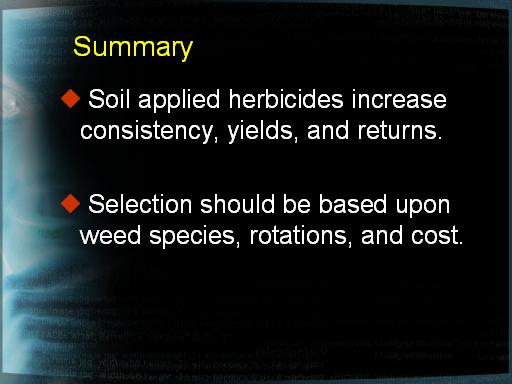 Summary<BR> Soil applied herbicides increase consistency, yields, and returns.
