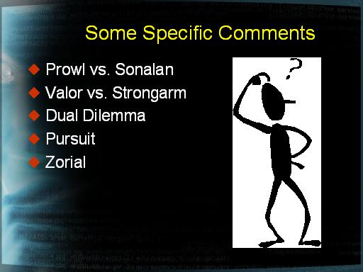Some Specific Comments<BR> Prowl vs. Sonalan