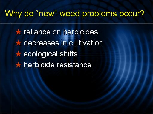 Why do “new” weed problems occur?<BR> reliance on herbicides
