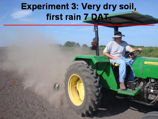 Experiment 3: Very dry soil, first rain 7 DAT.<BR>