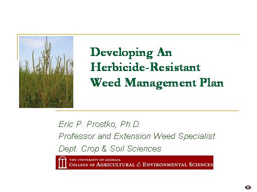 Developing An Herbicide-Resistant Weed Management Plan<BR>Eric P. Prostko, Ph.D. <BR>Professor and Extension Weed Specialist <BR>Dept. Crop & Soil Sciences<BR>