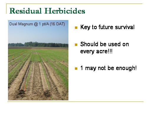 Residual Herbicides<BR>Key to future survival <BR> <BR>Should be used on every acre!!! <BR> <BR>1 may not be enough! <BR>Dual Magnum @ 1 pt/A (16 DAT) <BR>