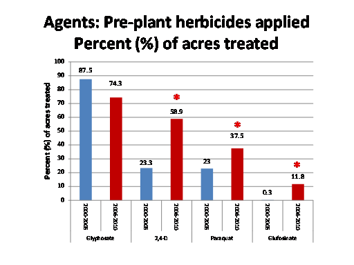 Agents: Pre-plant herbicides applied Percent (%) of acres treated<BR>*<BR>*<BR>*<BR>