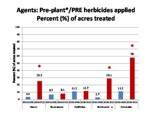 Agents: Pre-plant*/PRE herbicides applied  Percent (%) of acres treated<BR>*<BR>*<BR>*<BR>*<BR>