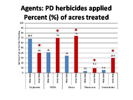 Agents: PD herbicides applied Percent (%) of acres treated<BR>*<BR>*<BR>*<BR>*<BR>*<BR>