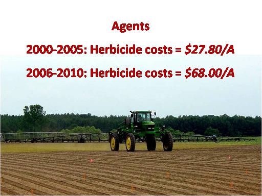 <BR>Agents <BR>2000-2005: Herbicide costs = $27.80/A <BR>2006-2010: Herbicide costs = $68.00/A<BR>