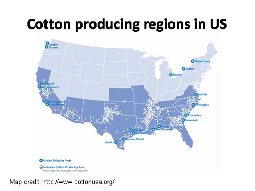 Cotton producing regions in US<BR>Map credit: http://www.cottonusa.org/ <BR>