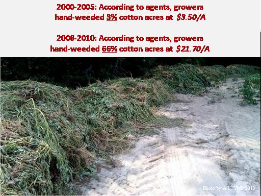 Photo by A.C. York 2010<BR>2000-2005: According to agents, growers  <BR>hand-weeded 3% cotton acres at  $3.50/A <BR> <BR>2006-2010: According to agents, growers  <BR>hand-weeded 66% cotton acres at  $21.70/A<BR>