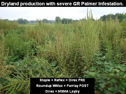 Staple + Reflex + Direx PRE <BR>Roundup WMax + Parrlay POST  <BR>Direx + MSMA Layby<BR>Dryland production with severe GR Palmer Infestation.<BR>