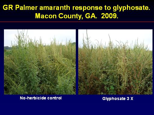 GR Palmer amaranth response to glyphosate.  Macon County, GA.  2009.<BR>No-herbicide control<BR>Glyphosate 3 X<BR>