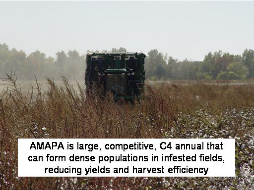 AMAPA is large, competitive, C4 annual that can form dense populations in infested fields, reducing yields and harvest efficiency<BR>