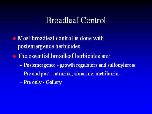 <LI><H2>Most broadleaf control is done with postemergence herbicides.