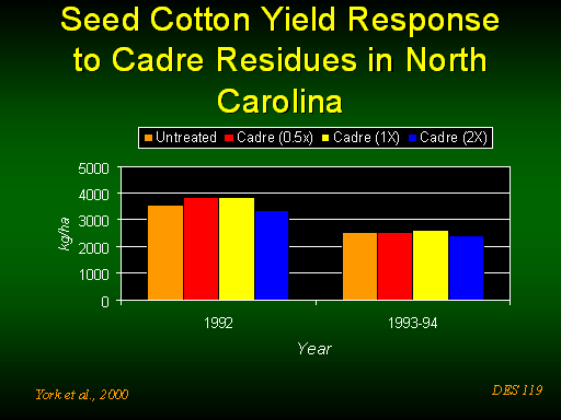 <H1>Seed Cotton Yield Response to Cadre Residues in North Carolina</H1>
