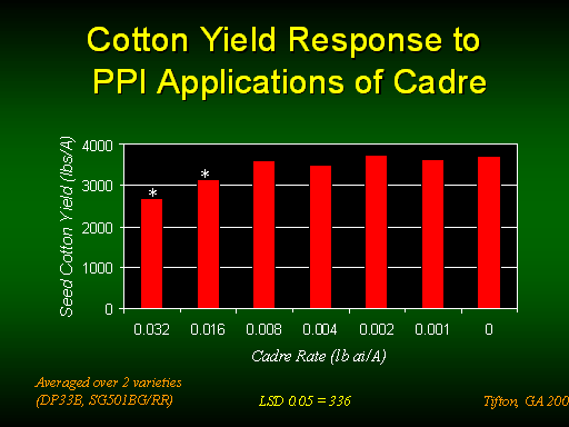 <H1>Cotton Yield Response to PPI Applications of Cadre</H1>