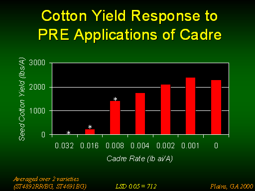 <H1>Cotton Yield Response to PRE Applications of Cadre</H1>