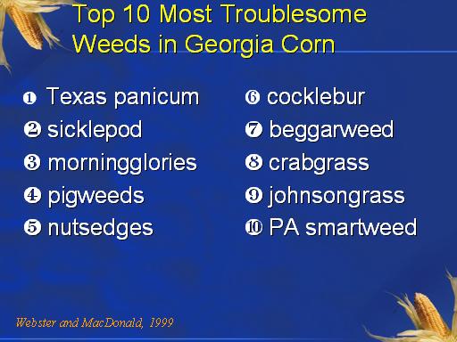 Top 10 Most Troublesome Weeds in Georgia Corn<BR> Texas panicum