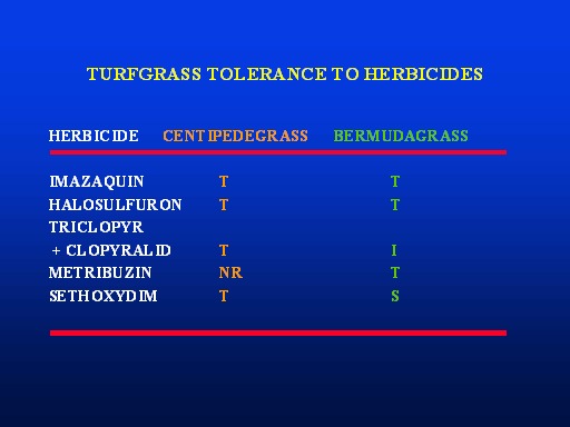 <H2>HERBICIDE	CENTIPEDEGRASS	BERMUDAGRASS