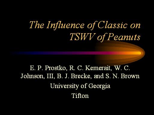 The Influence of Classic on TSWV of Peanuts<BR>E. P. Prostko, R. C. Kemerait, W. C. Johnson, III, B. J. Brecke, and S. N. Brown