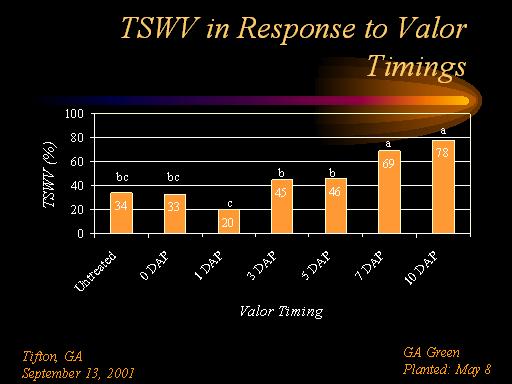 TSWV in Response to Valor Timings<BR>Tifton, GA