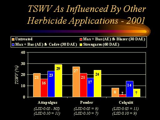 TSWV As Influenced By Other Herbicide Applications - 2001<BR>(LSD 0.05 - NS)