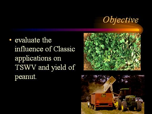 Objective<BR>evaluate the influence of Classic applications on TSWV and yield of peanut.<BR>