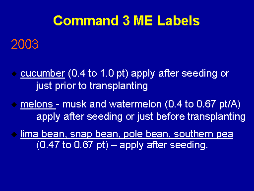 <BR> cucumber (0.4 to 1.0 pt) apply after seeding or 		just prior to transplanting